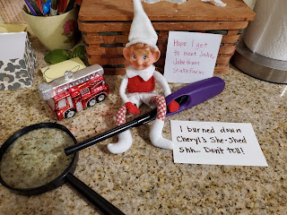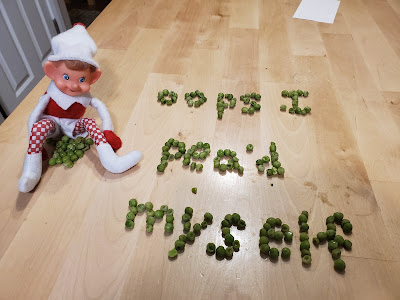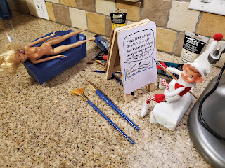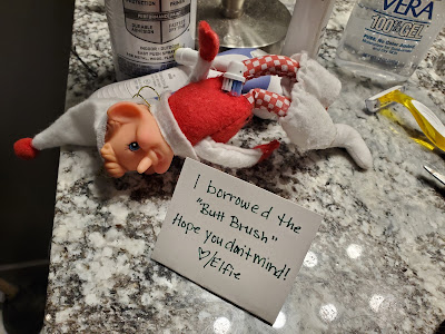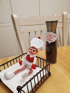 The first year I did it and they actually liked it, the second year they wanted to do it and took turns, and we skipped the house fire year. (Here's a link to some of our younger kid elf posts) I wasn't going to do it this year, then I decided it would bring laughter and happiness back into the home. We didn't get much of a Christmas last year. So, I spent hours looking up ideas for older kids/adults on Pinterest. (don't you just love Pinterest!). All of the ideas were either too childish, or too crude meant for adults. So, I took some of the ideas and made them into my own funny teachable moments. The kids loved it, so I kept doing it. You know your kids like it when they show their teenage friends everyday and their friends laugh and are jealous because their elf is childish. Again, all my kids are all adults or really close to being adults.